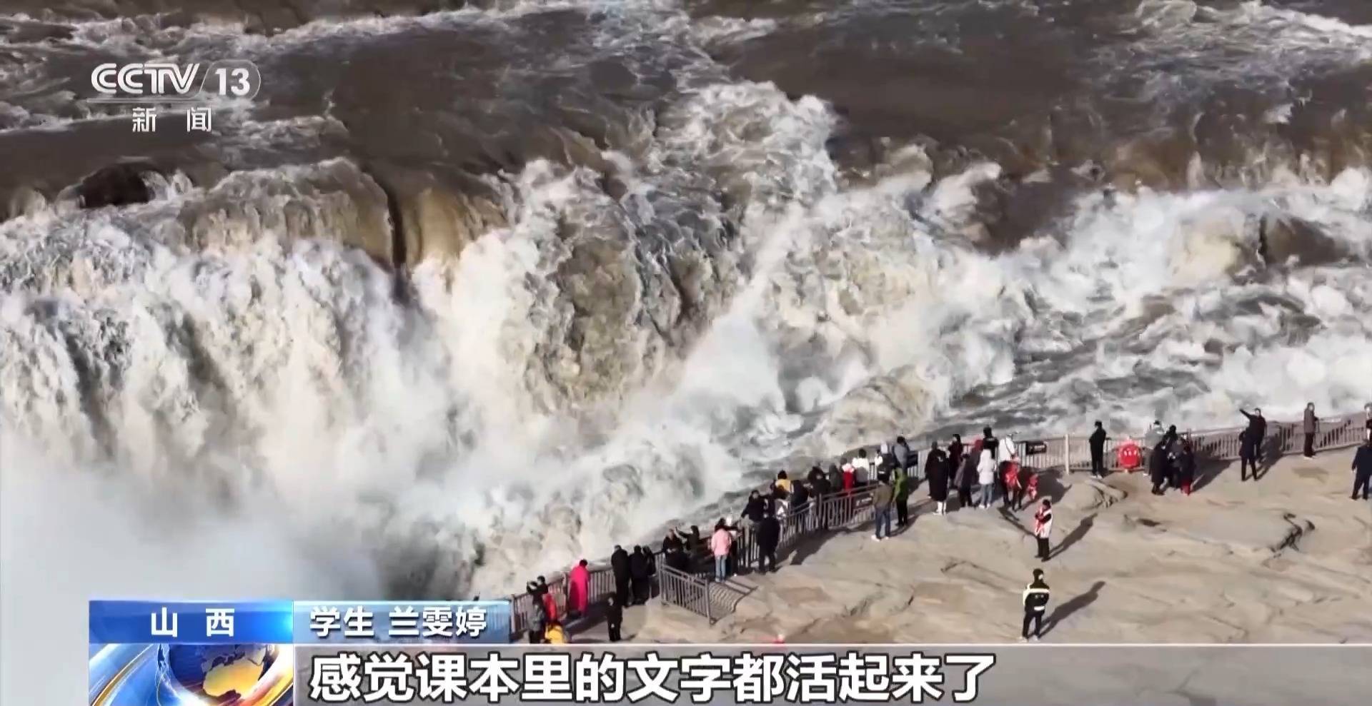 学生 兰雯婷:我就是山西人,每次来到壶口岸边都有一种特别奇特的感受,感觉课本里的文字都活起来了。